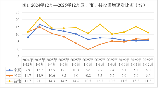 2025年,盐池县立足新发展阶段,贯彻新发展理念,融入新发展格局,坚持把抓项目、稳投资作为促进经济平稳运行的关键抓手,取得卓越成效。2025年全县固定资产投资总量136.3亿元,同比增长11.3%,2024年12月—2025年12月连续13个月保持两位数增长,全年固定资产投资增速高于全区5.3个百分点,高于全市4.7个百分点,位列全区第七,全市第二。