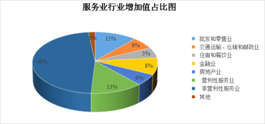 (六)非营利性服务业带动不足。非营利性服务业(主要包括水利、环境和公共设施管理业、教育、卫生和社会工作、公共管理、社会保障和社会组织等行业)实现增加值28.02亿元,占服务业的46.17%,增长3.8%,对全县服务业的贡献率为43.87%,较上年同期增加3.8个百分点,对全县服务业影响较大。