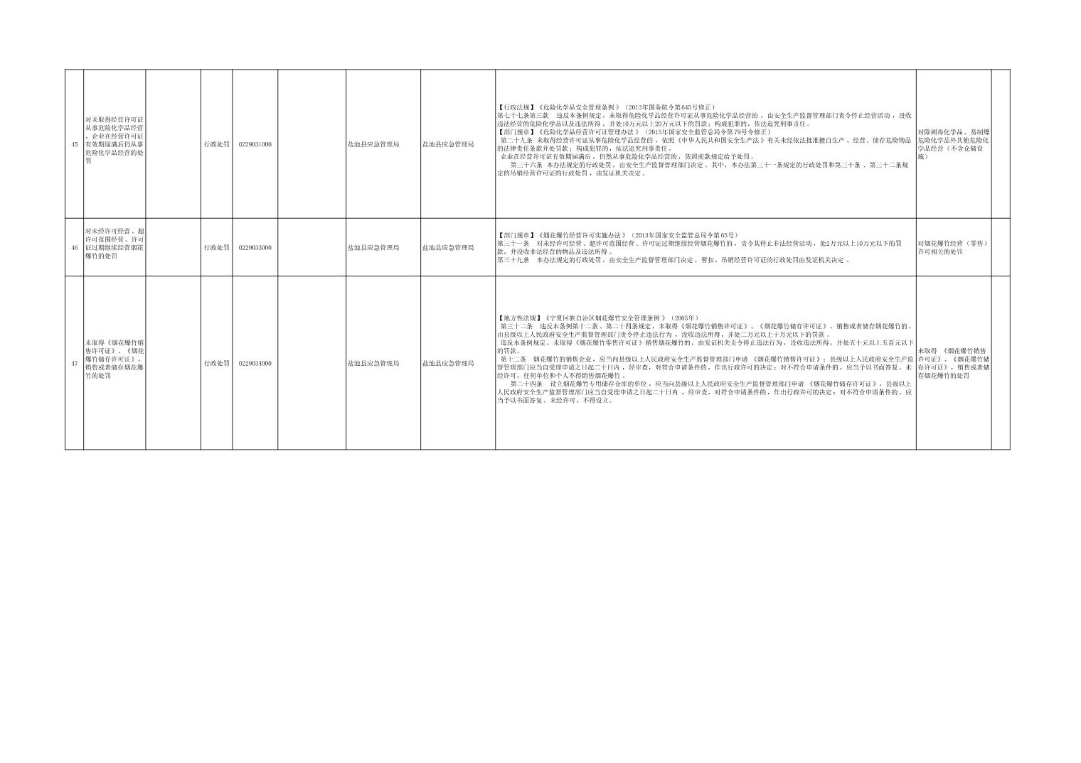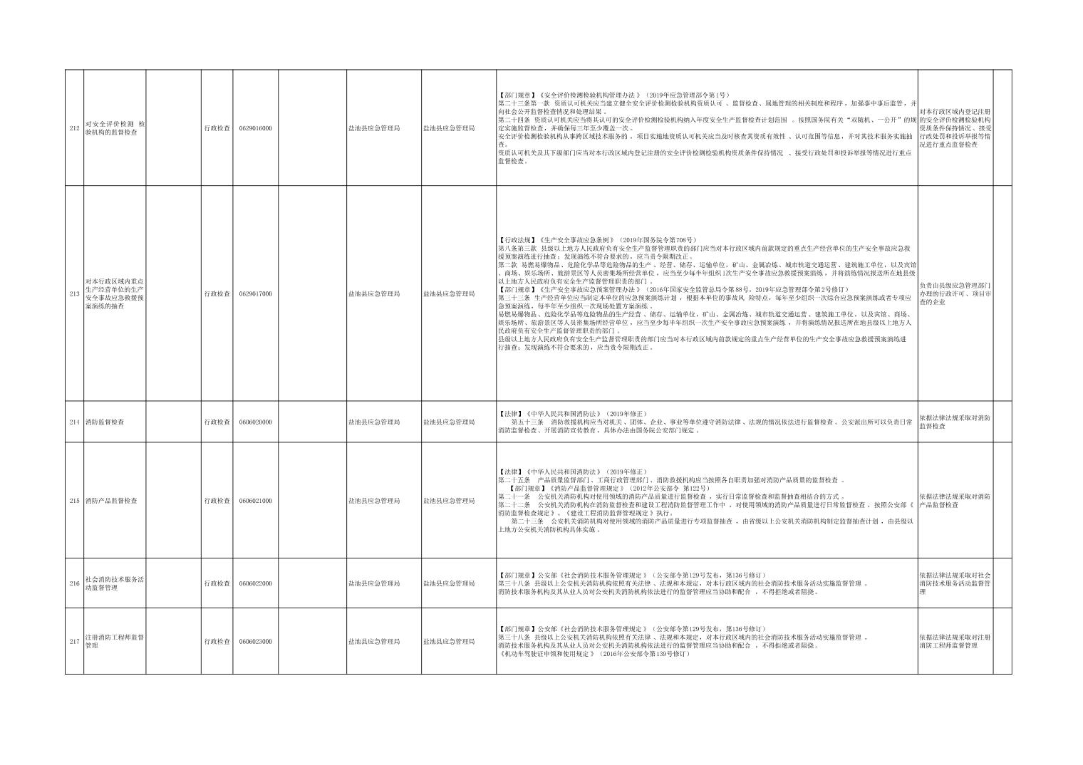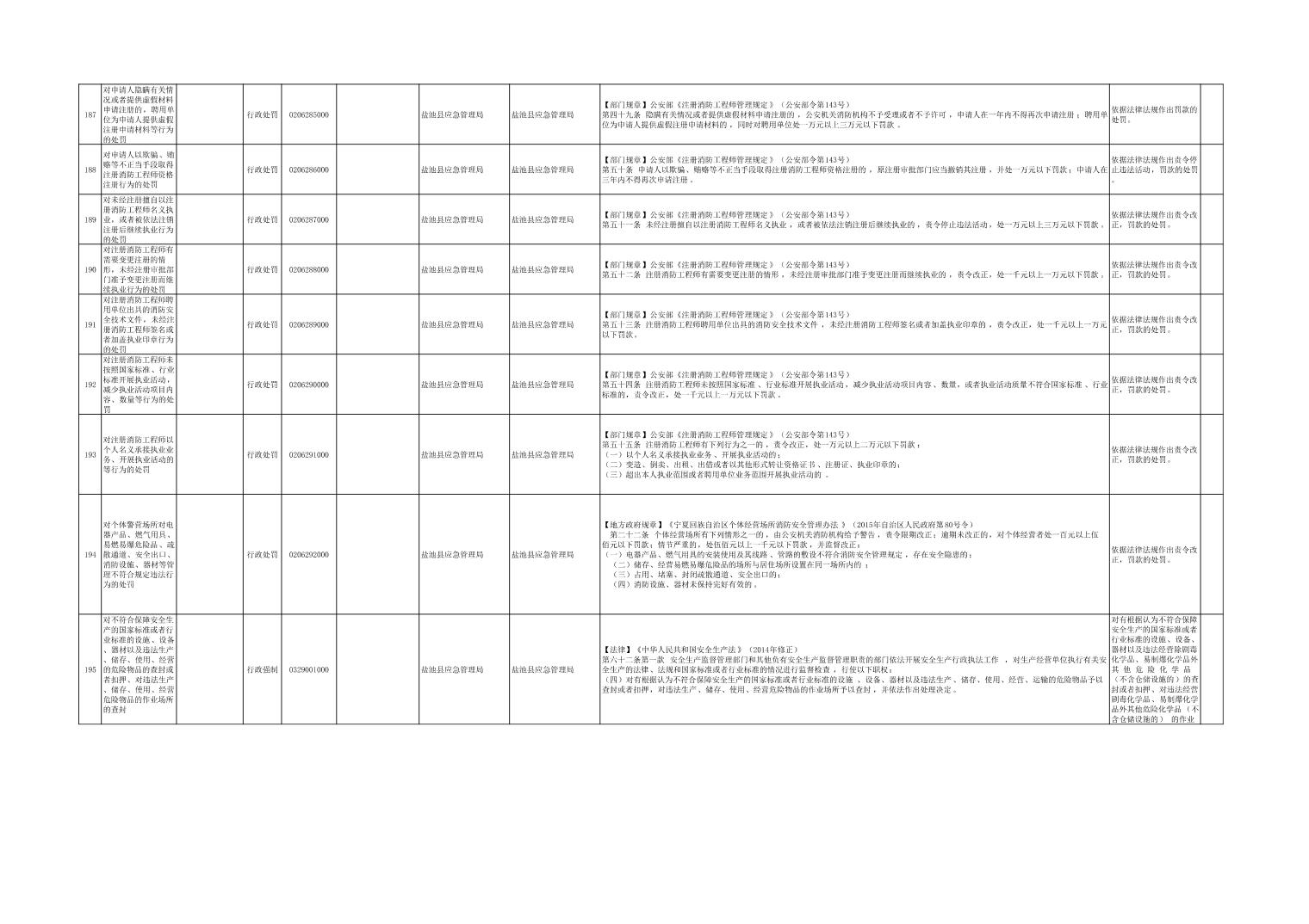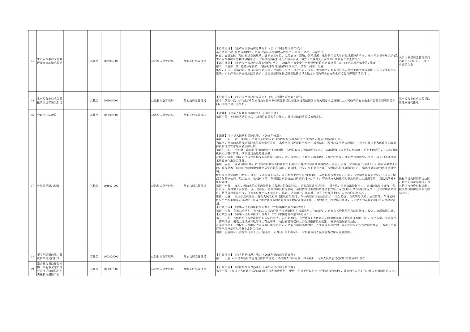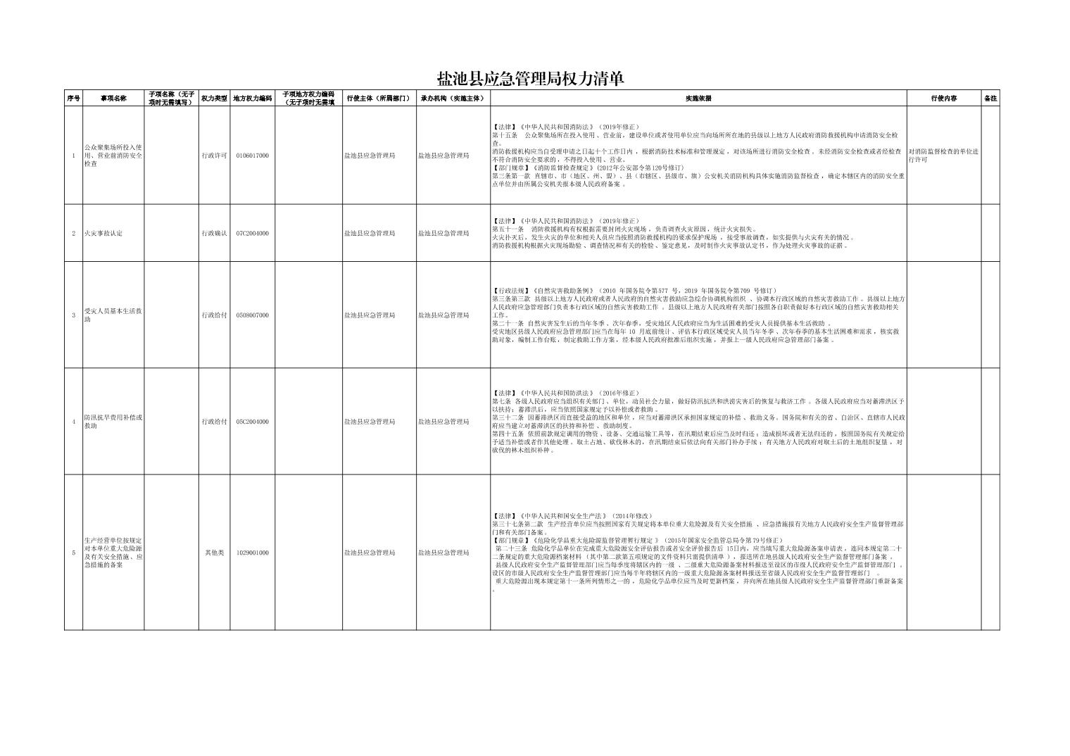 盐池县应急管理局权力清单