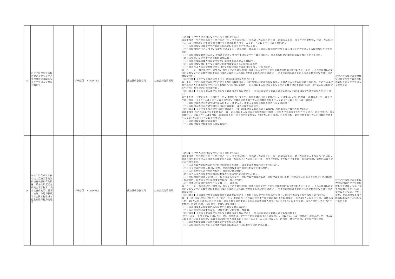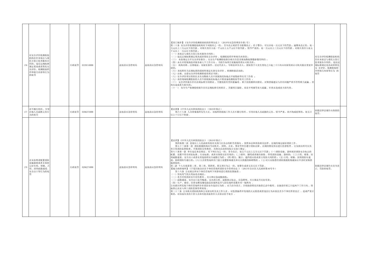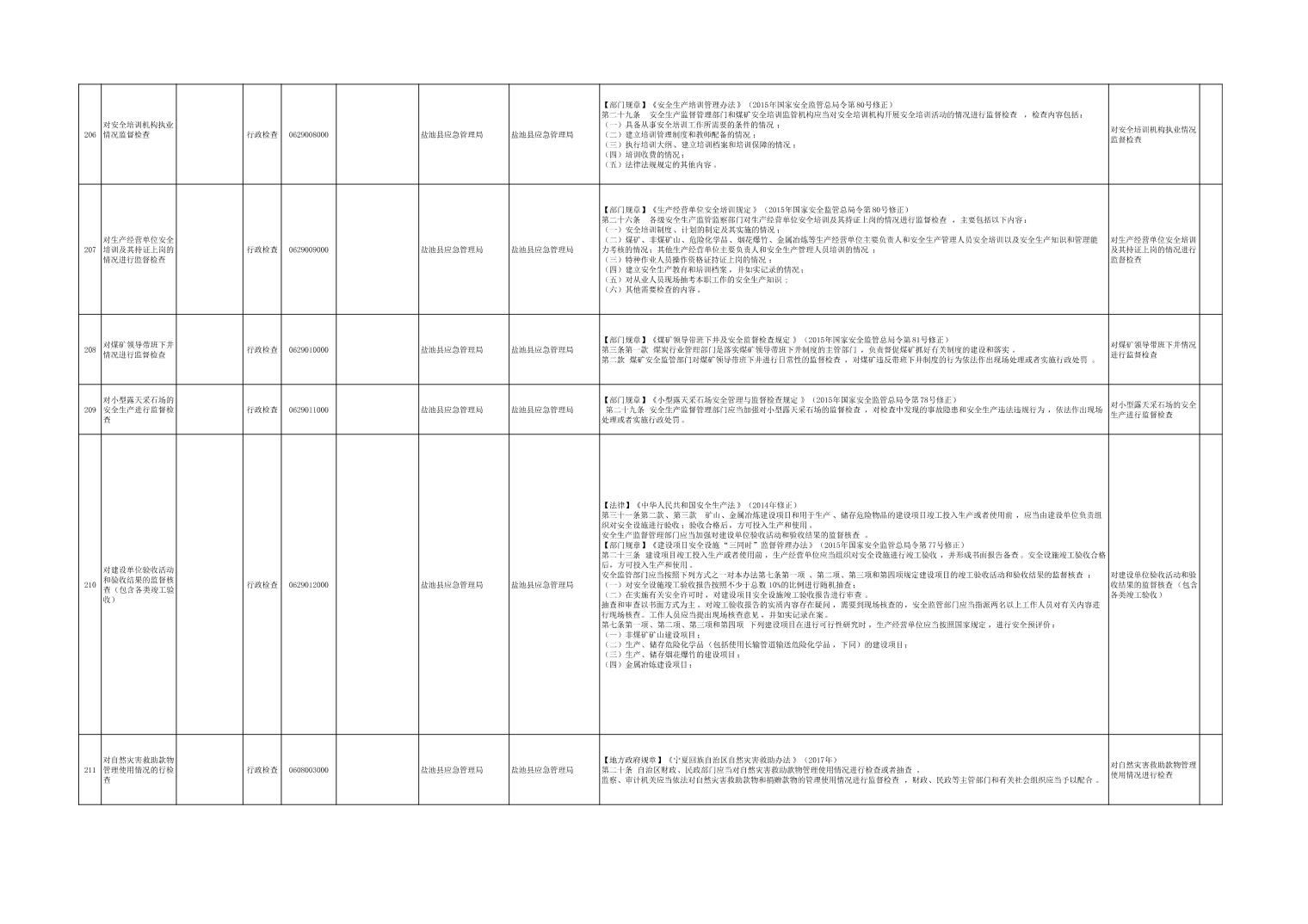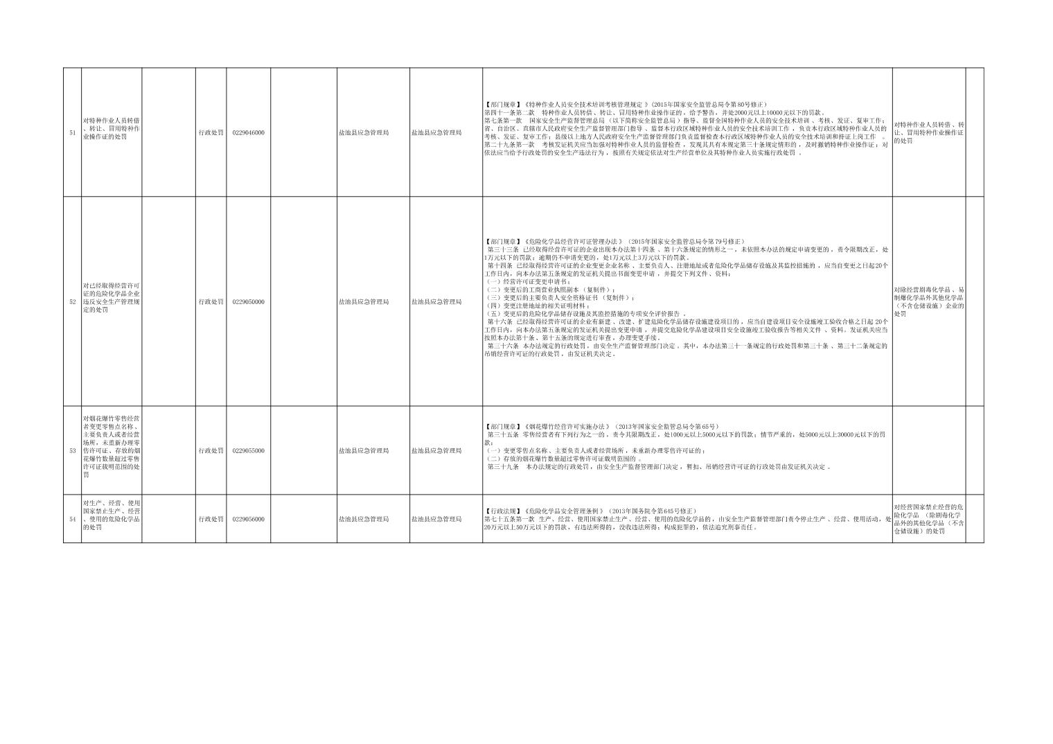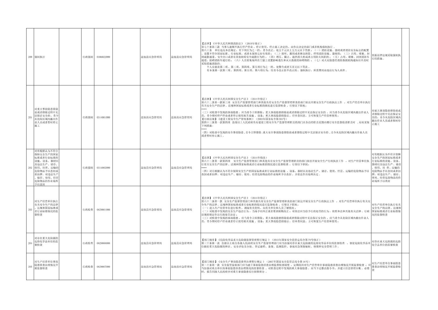 盐池县应急管理局权力清单