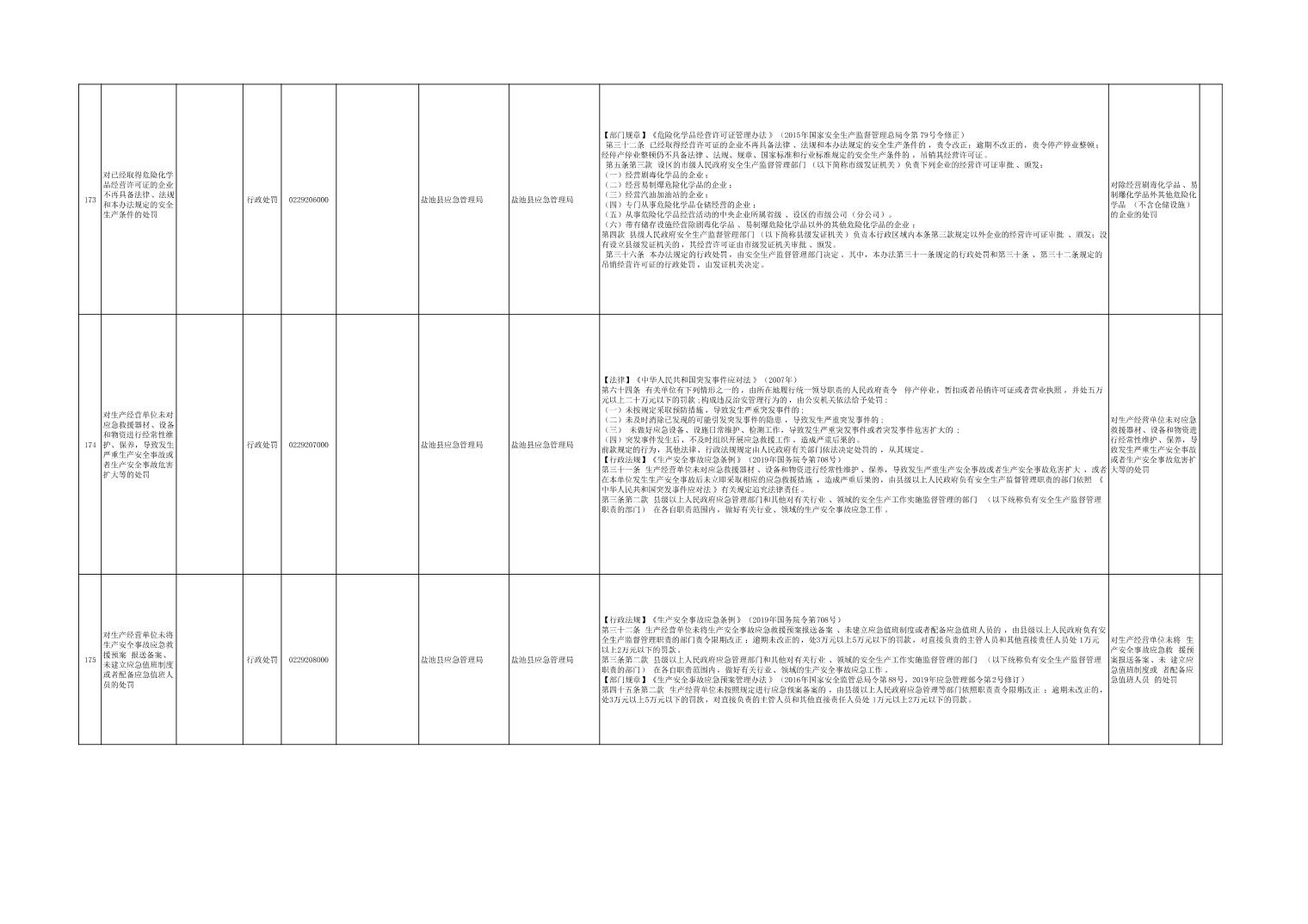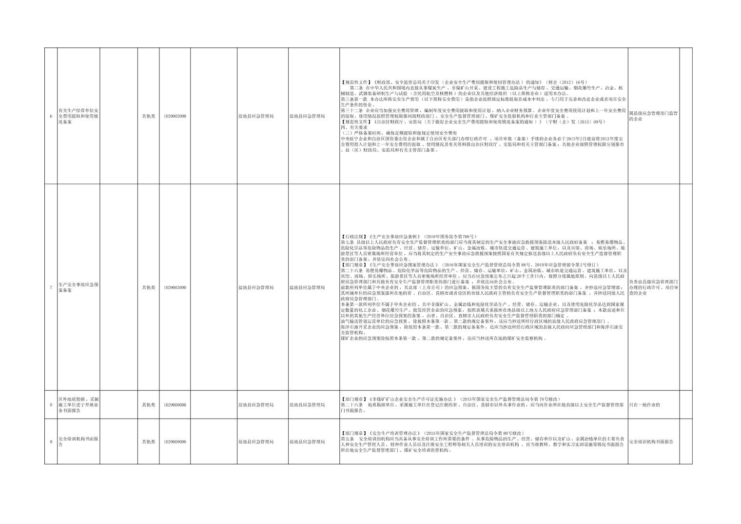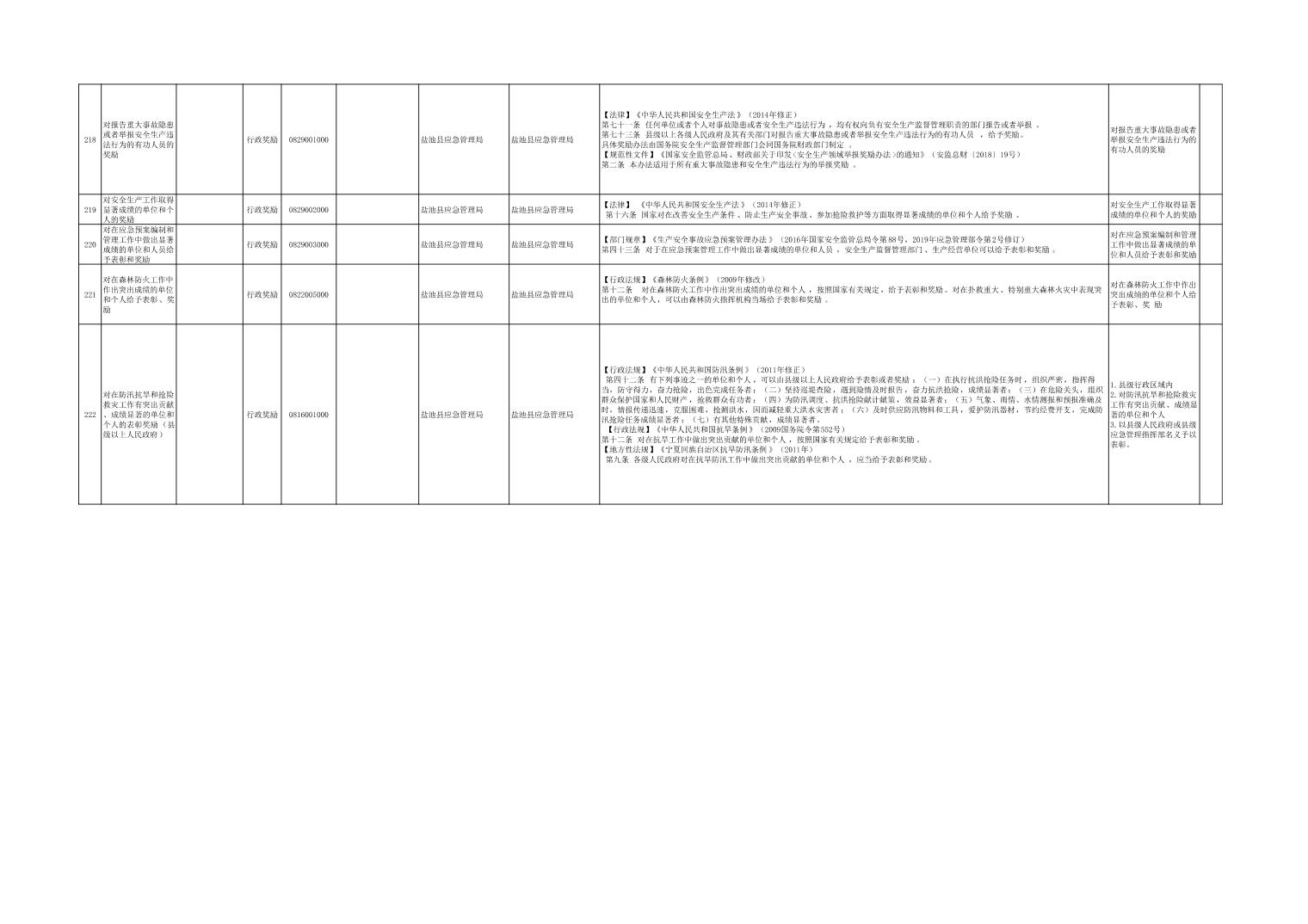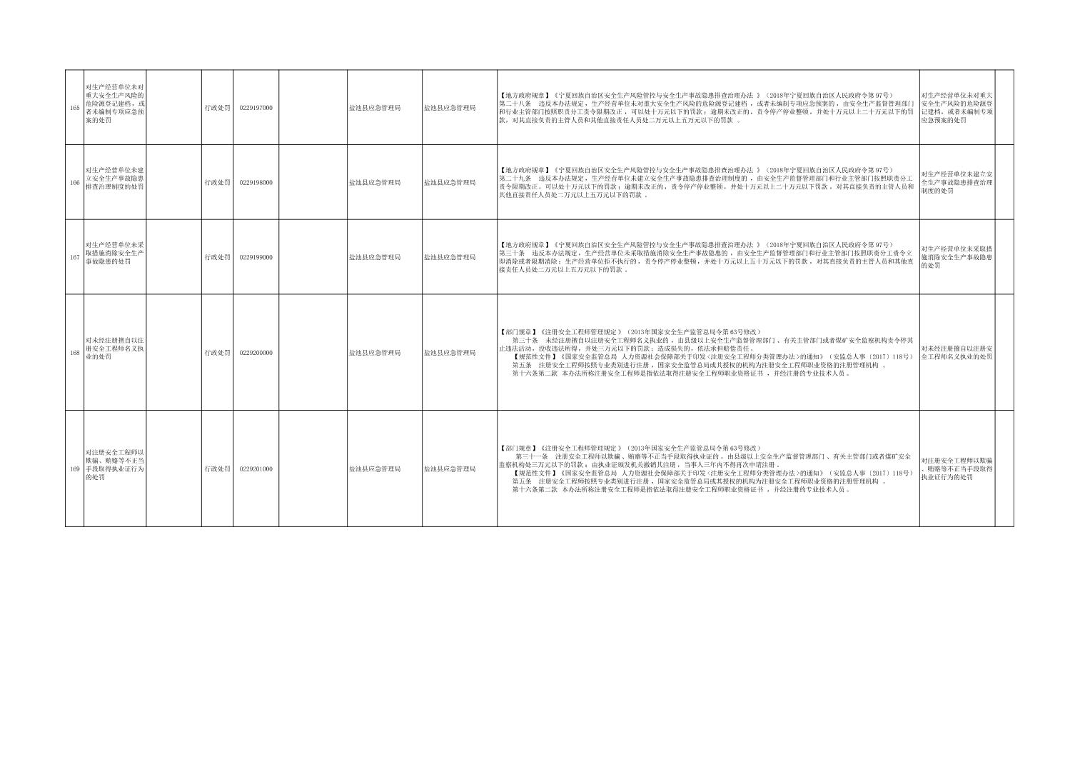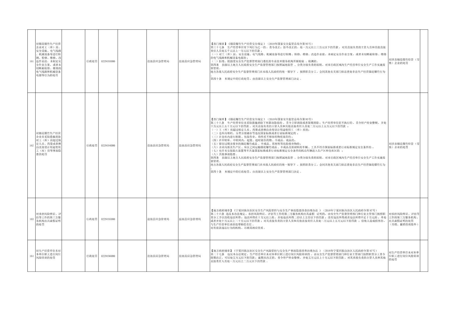 盐池县应急管理局权力清单