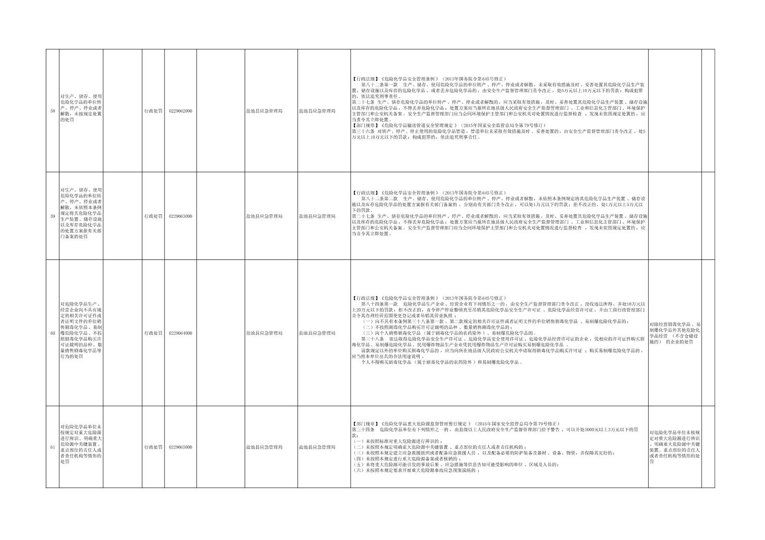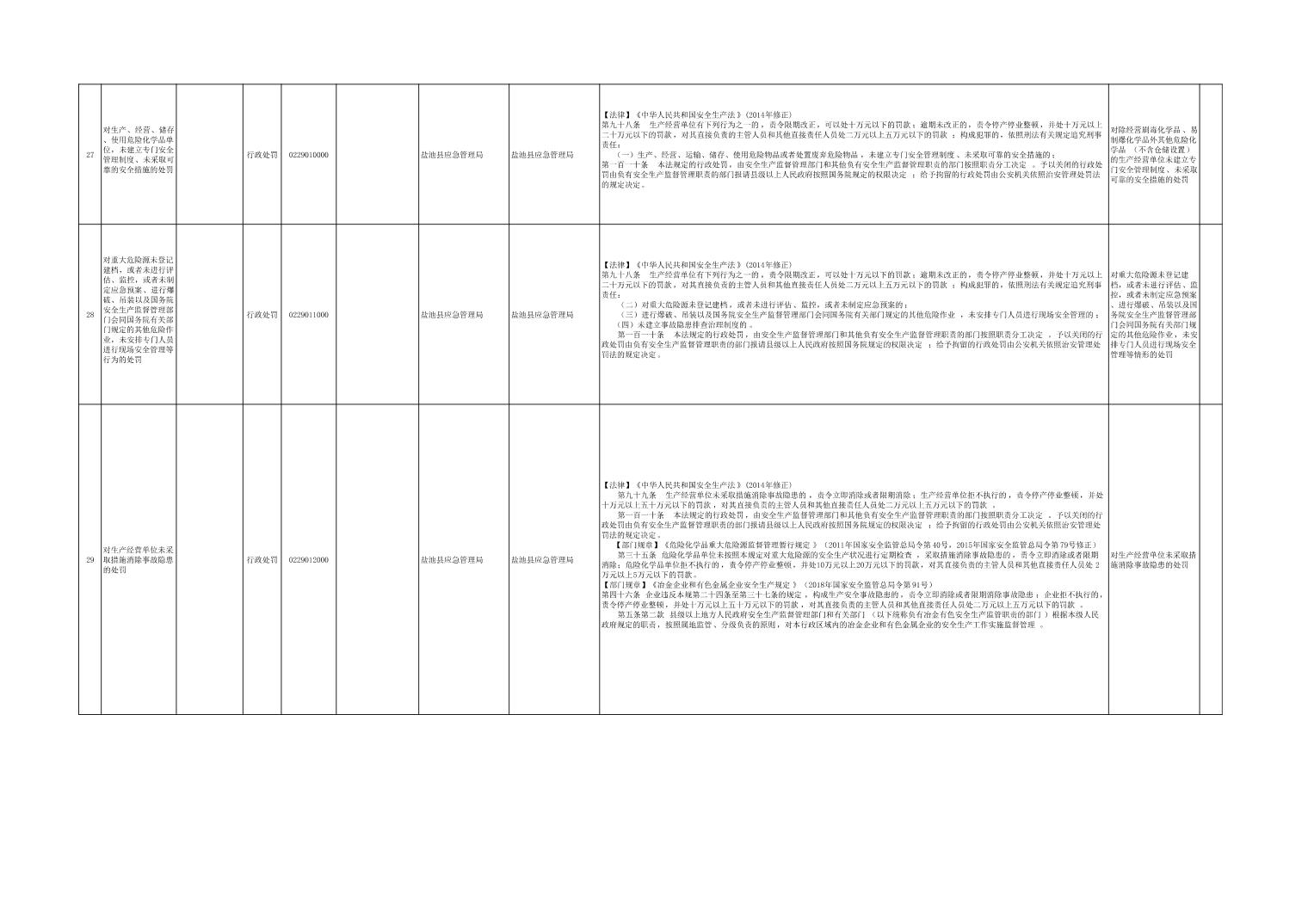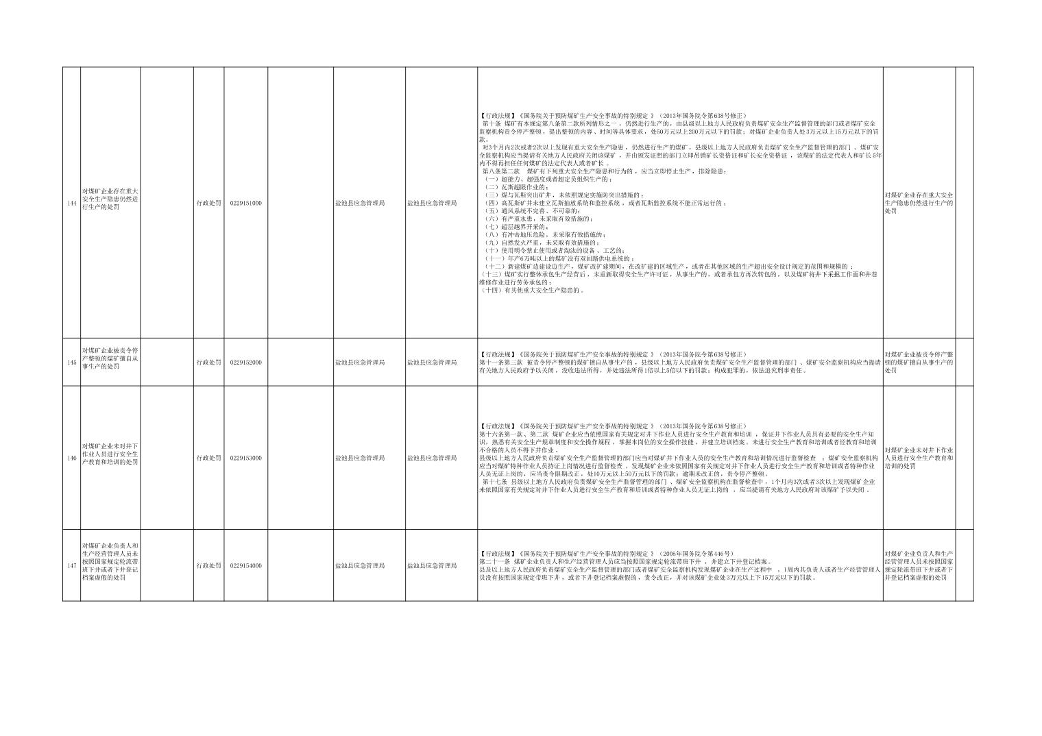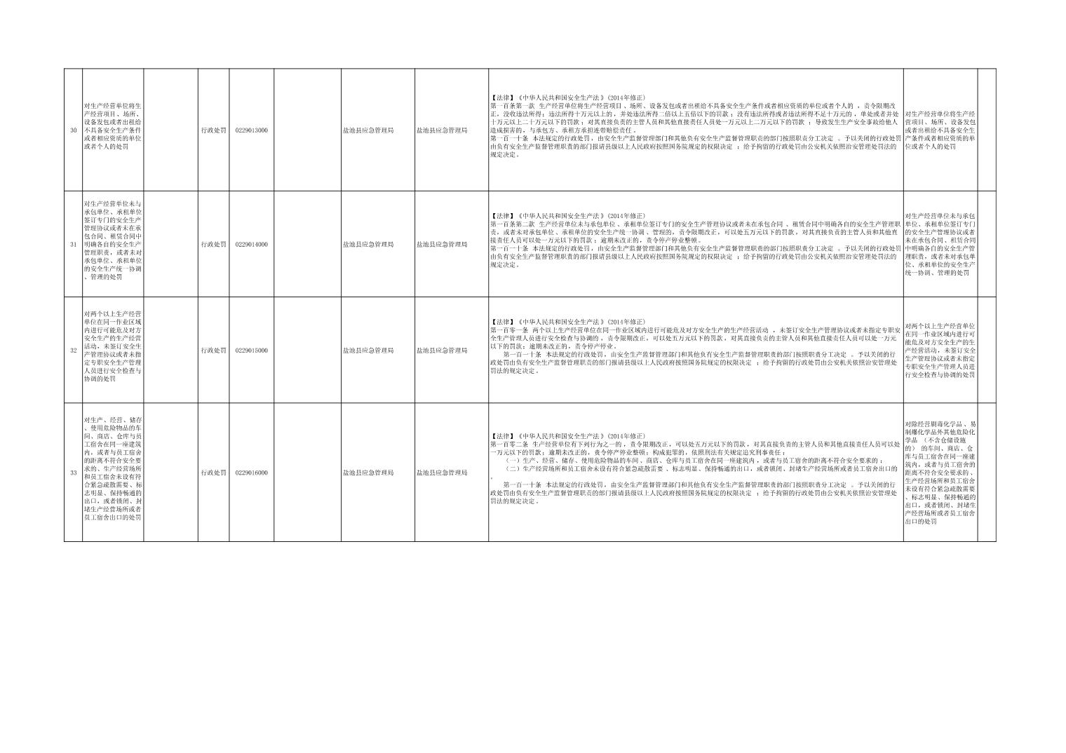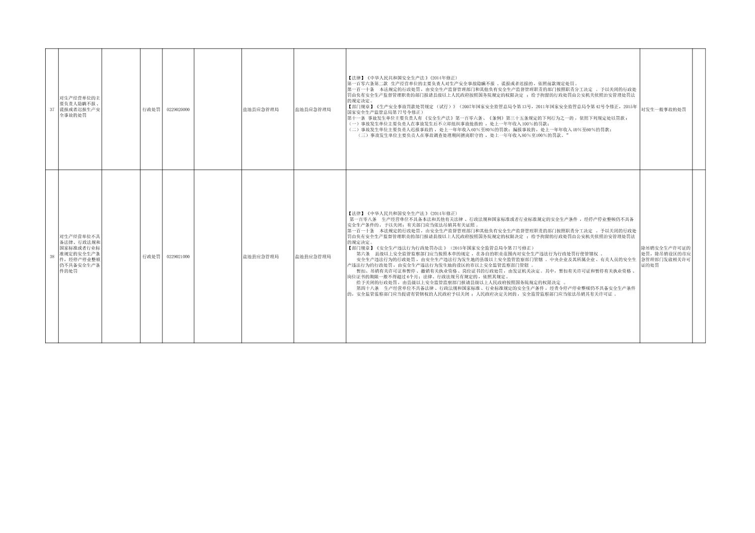 盐池县应急管理局权力清单
