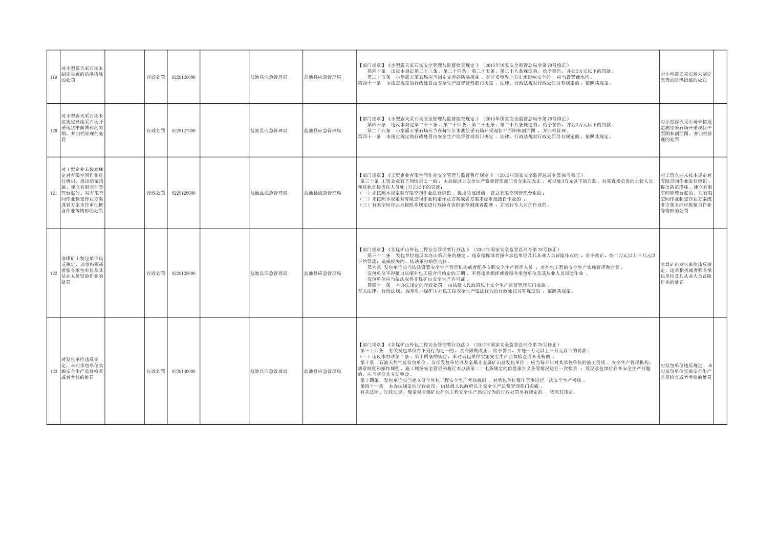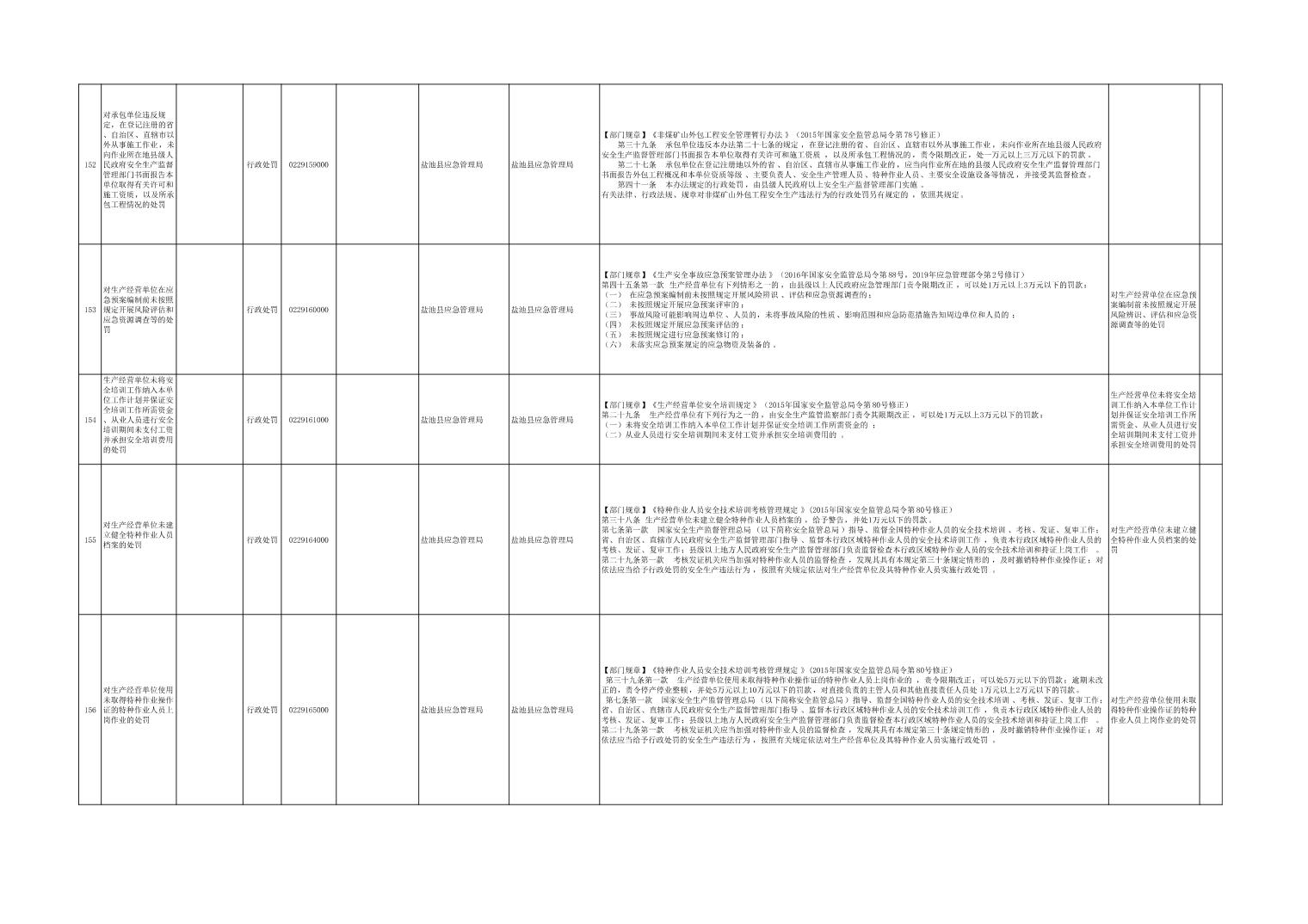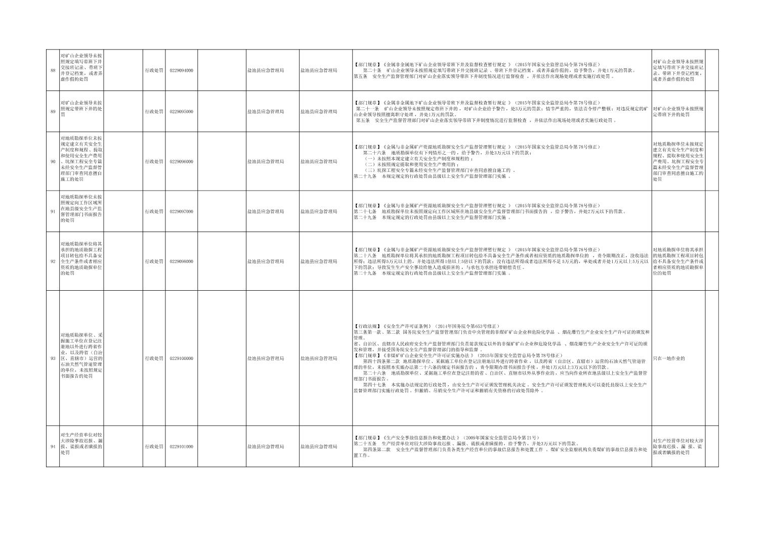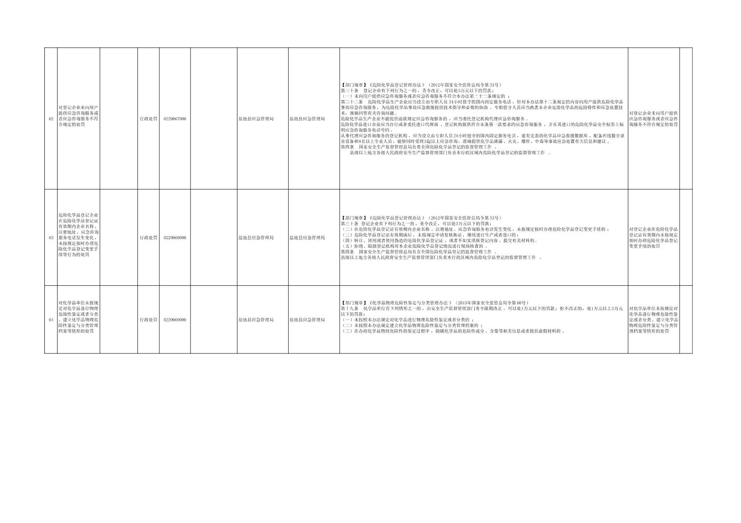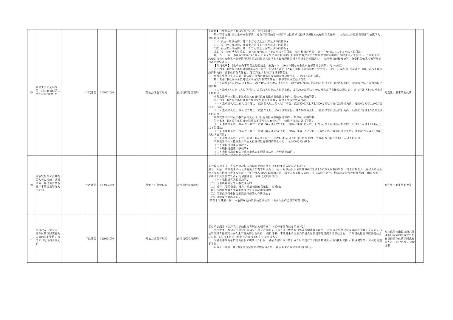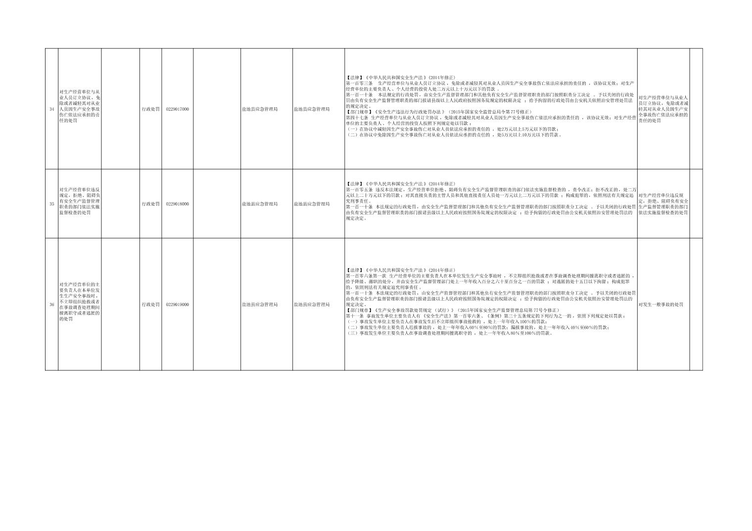 盐池县应急管理局权力清单