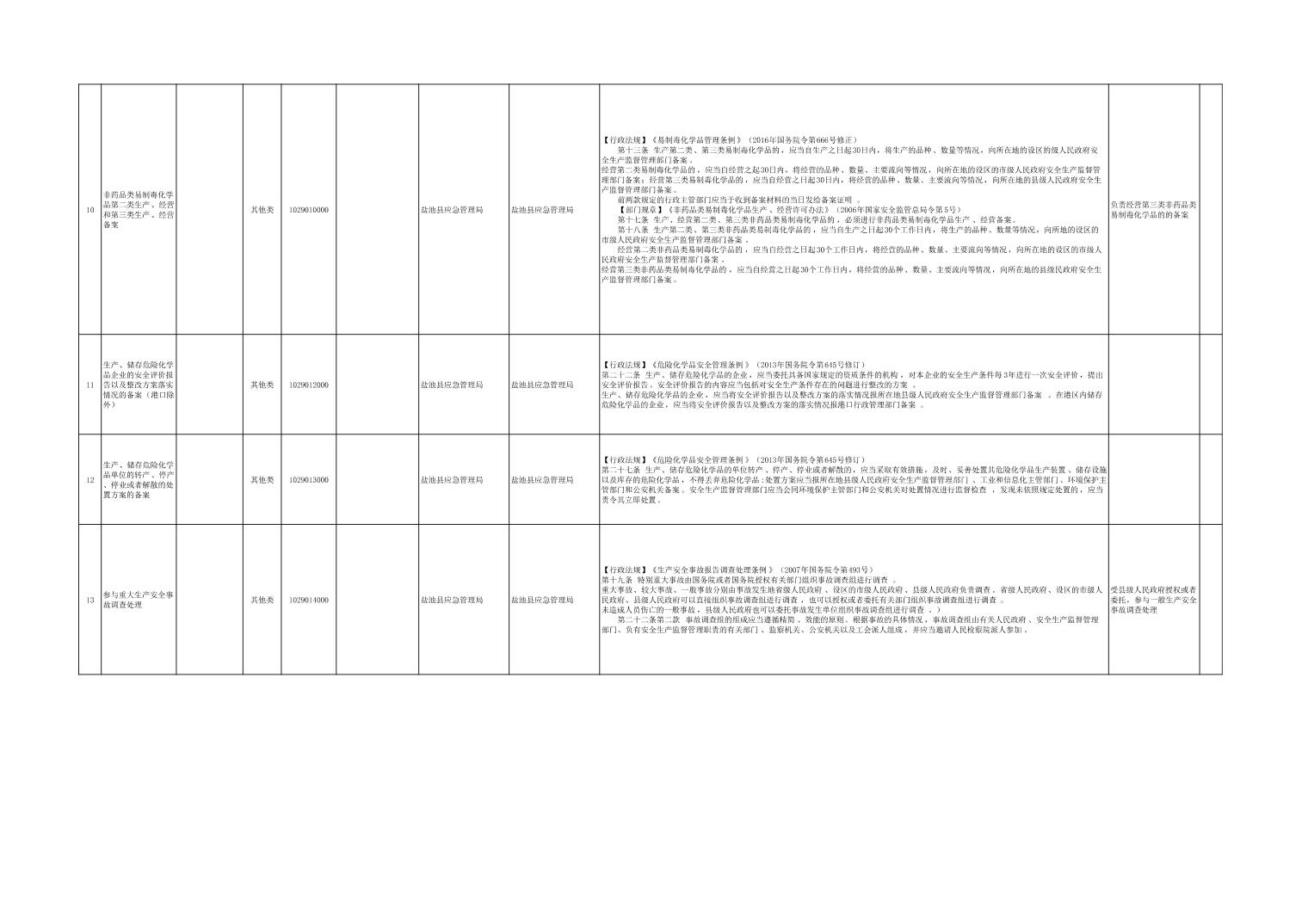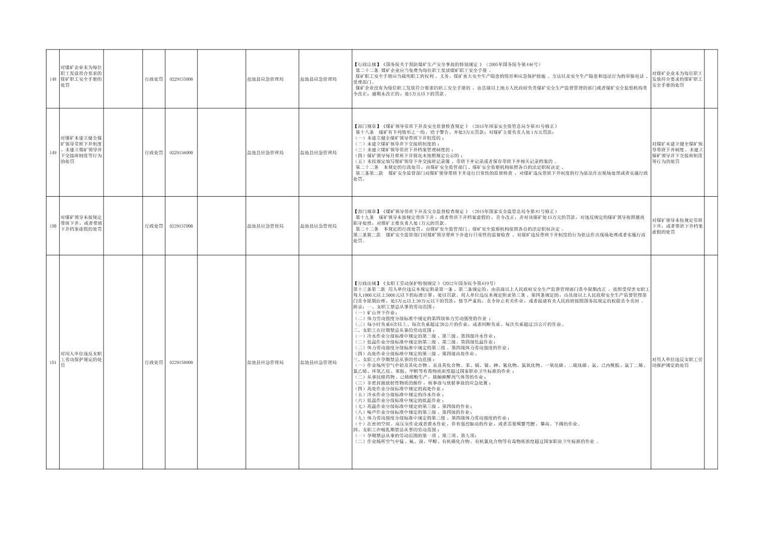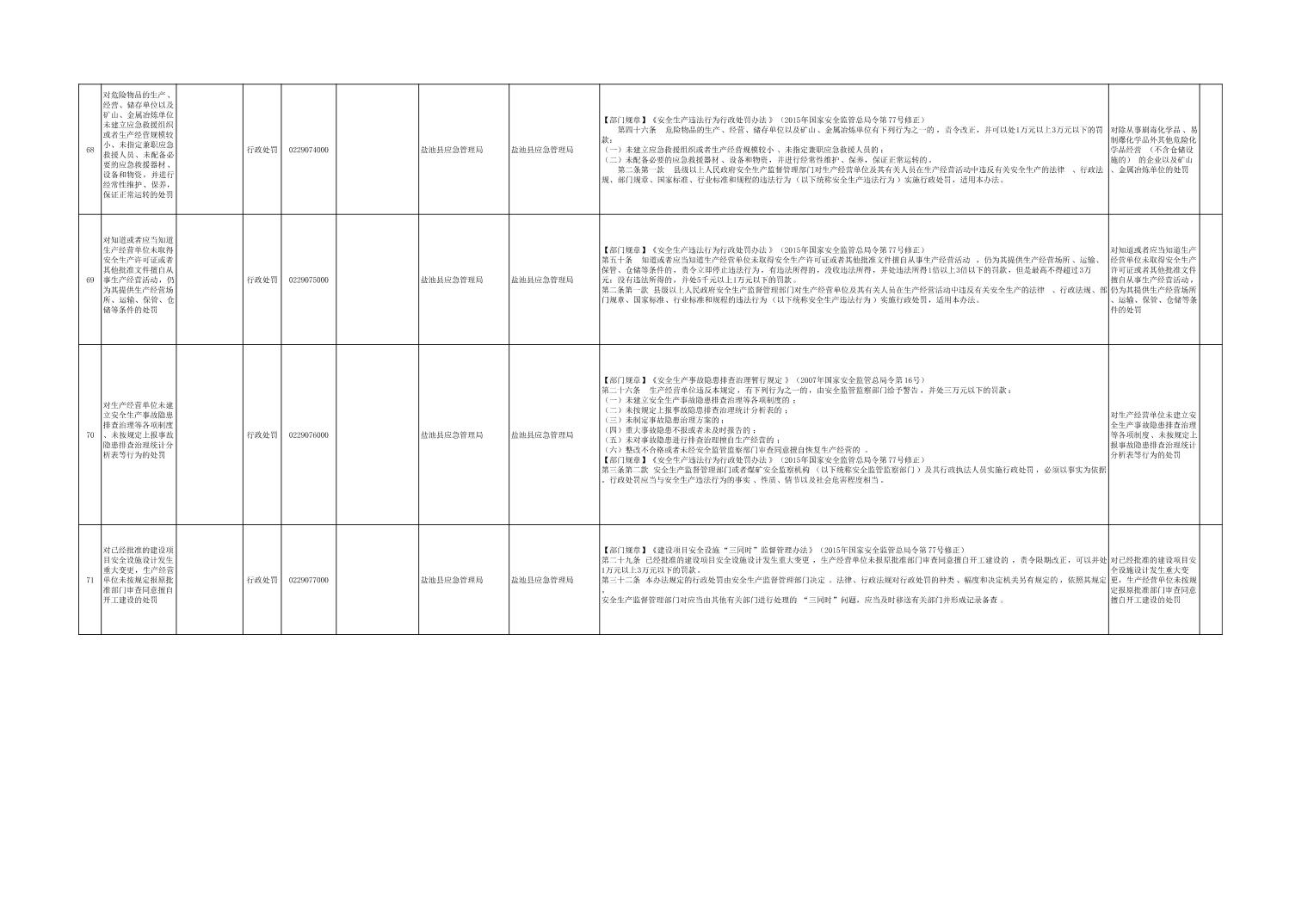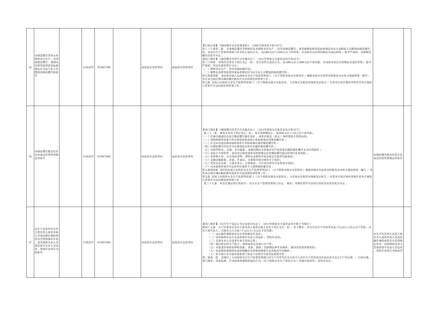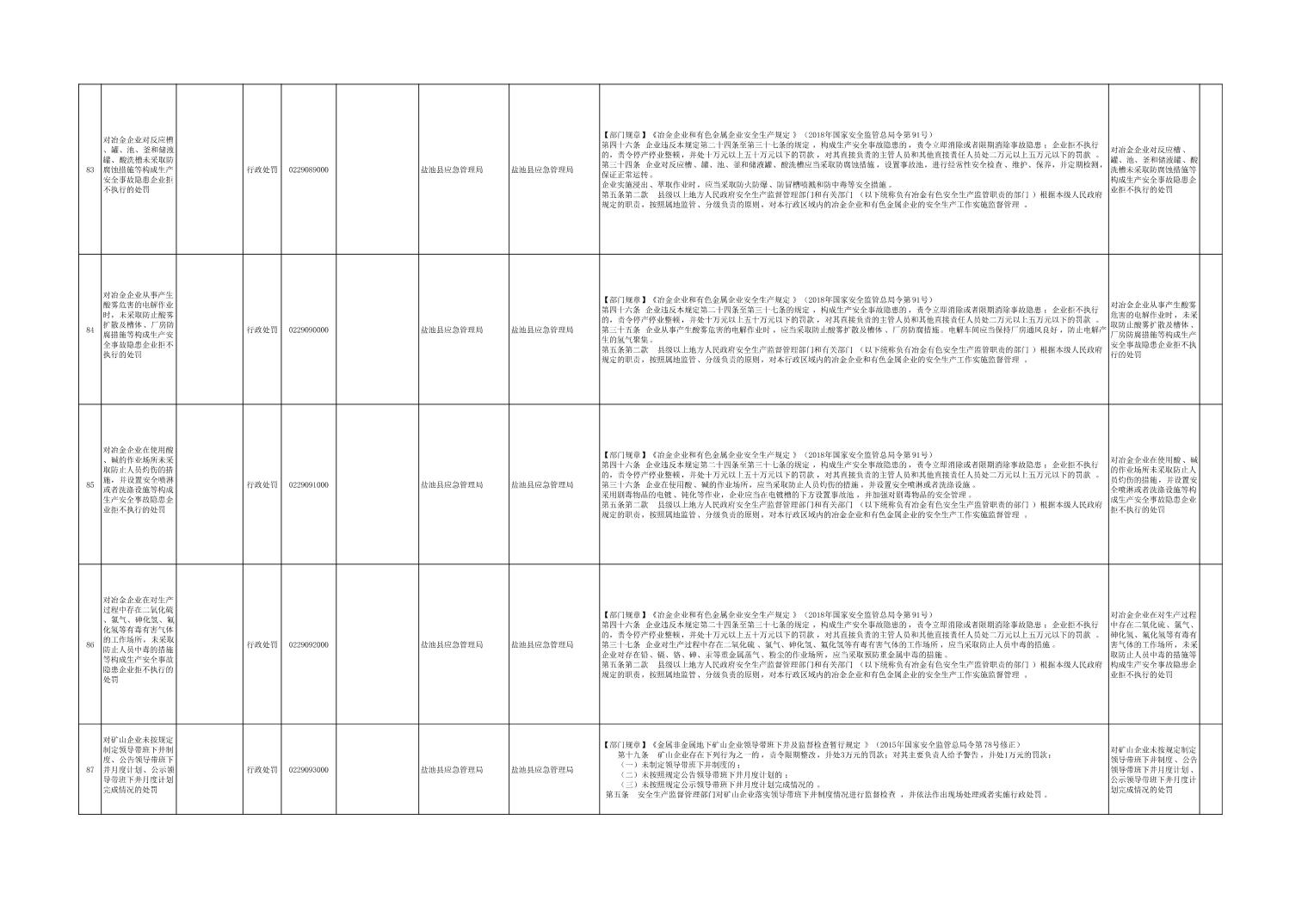 盐池县应急管理局权力清单