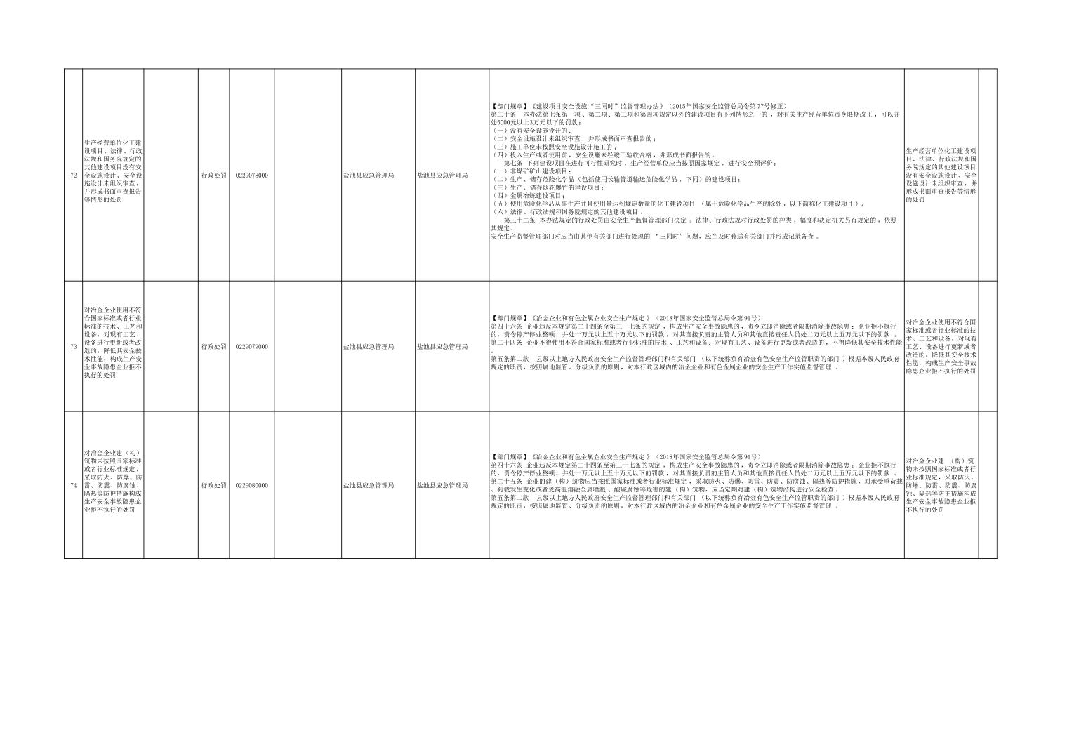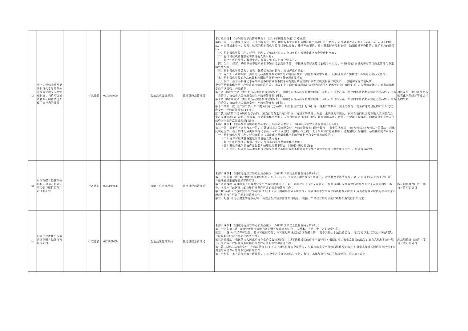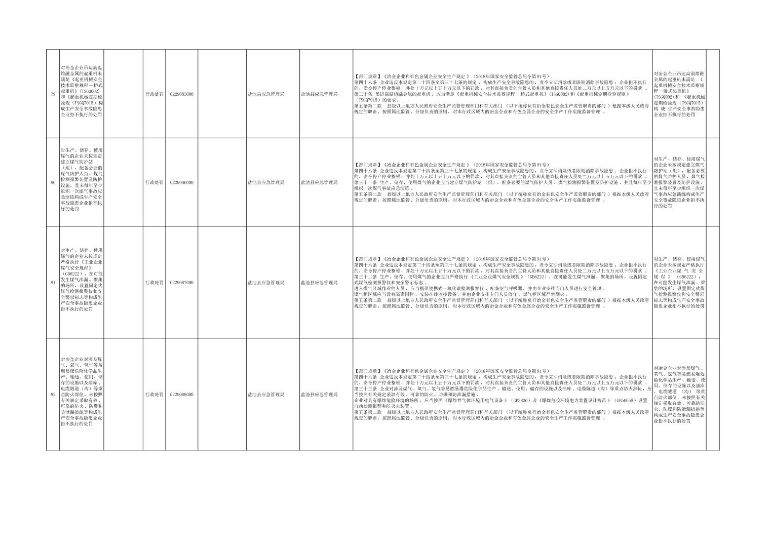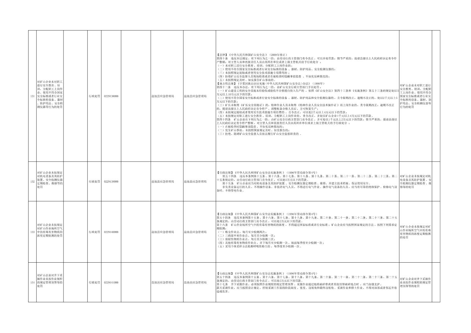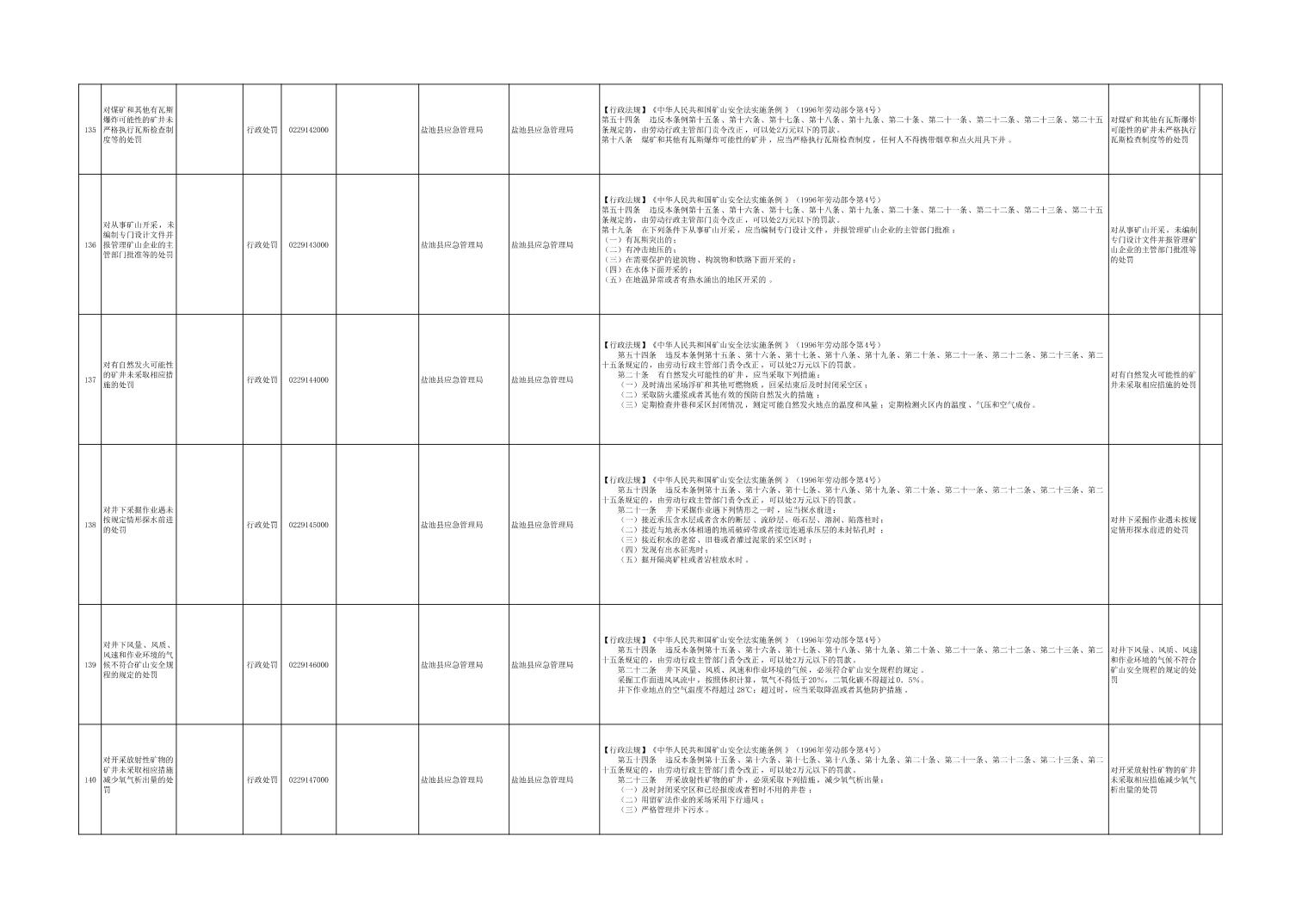 盐池县应急管理局权力清单