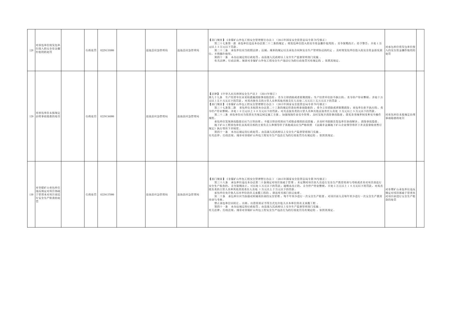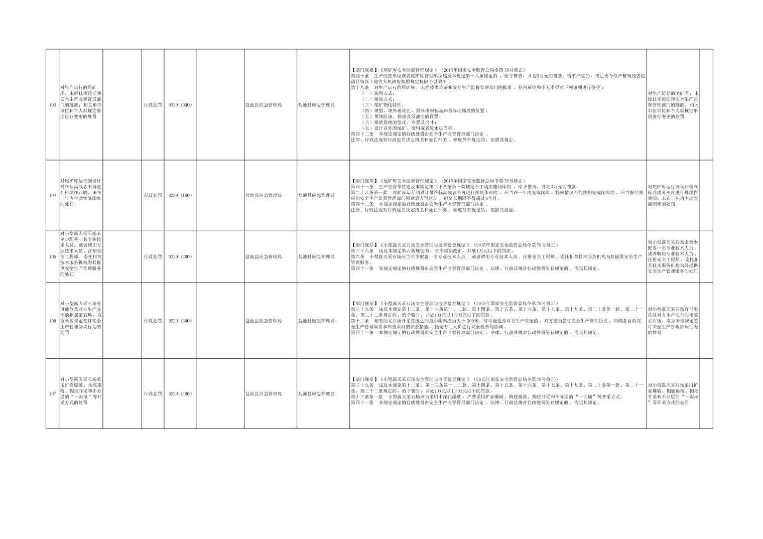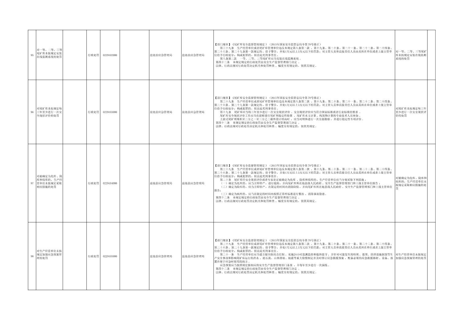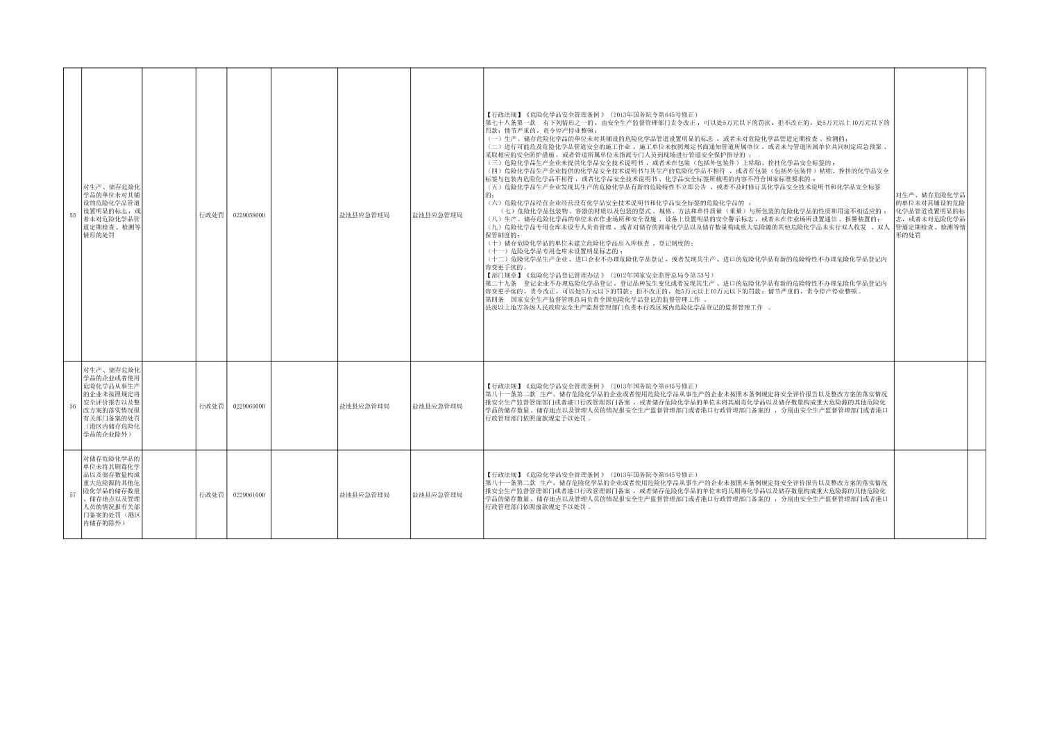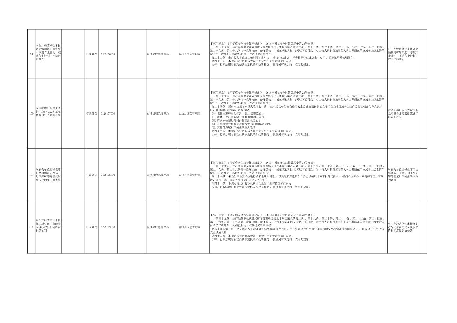 盐池县应急管理局权力清单