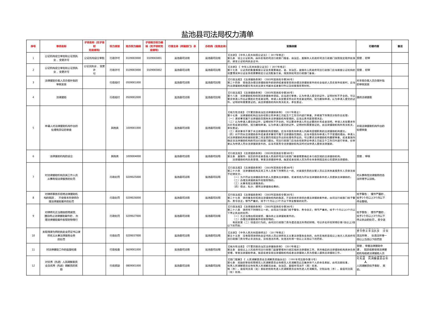 盐池县司法局权力清单(2022年)