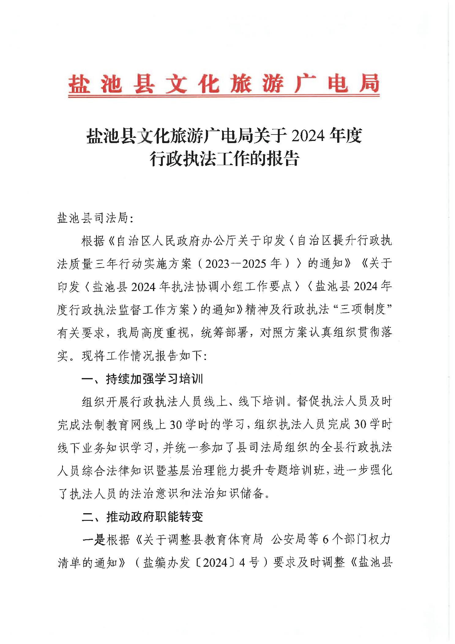 盐池县文化旅游广电局关于2024年度行政执法工作的报告