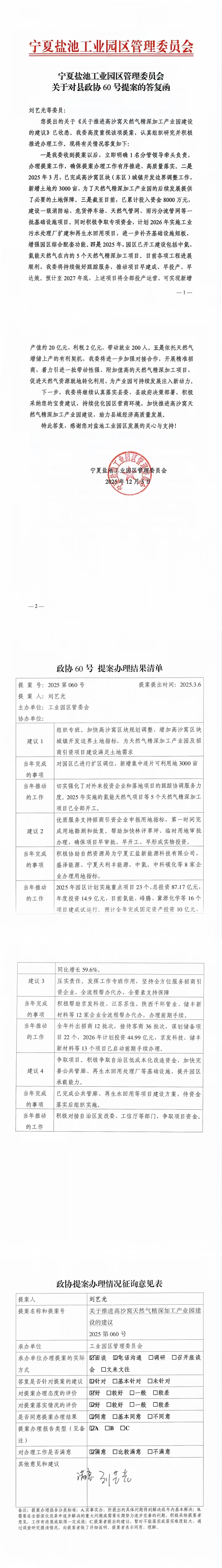 宁夏盐池工业园区管理委员会关于对县政协60号提案的答复函