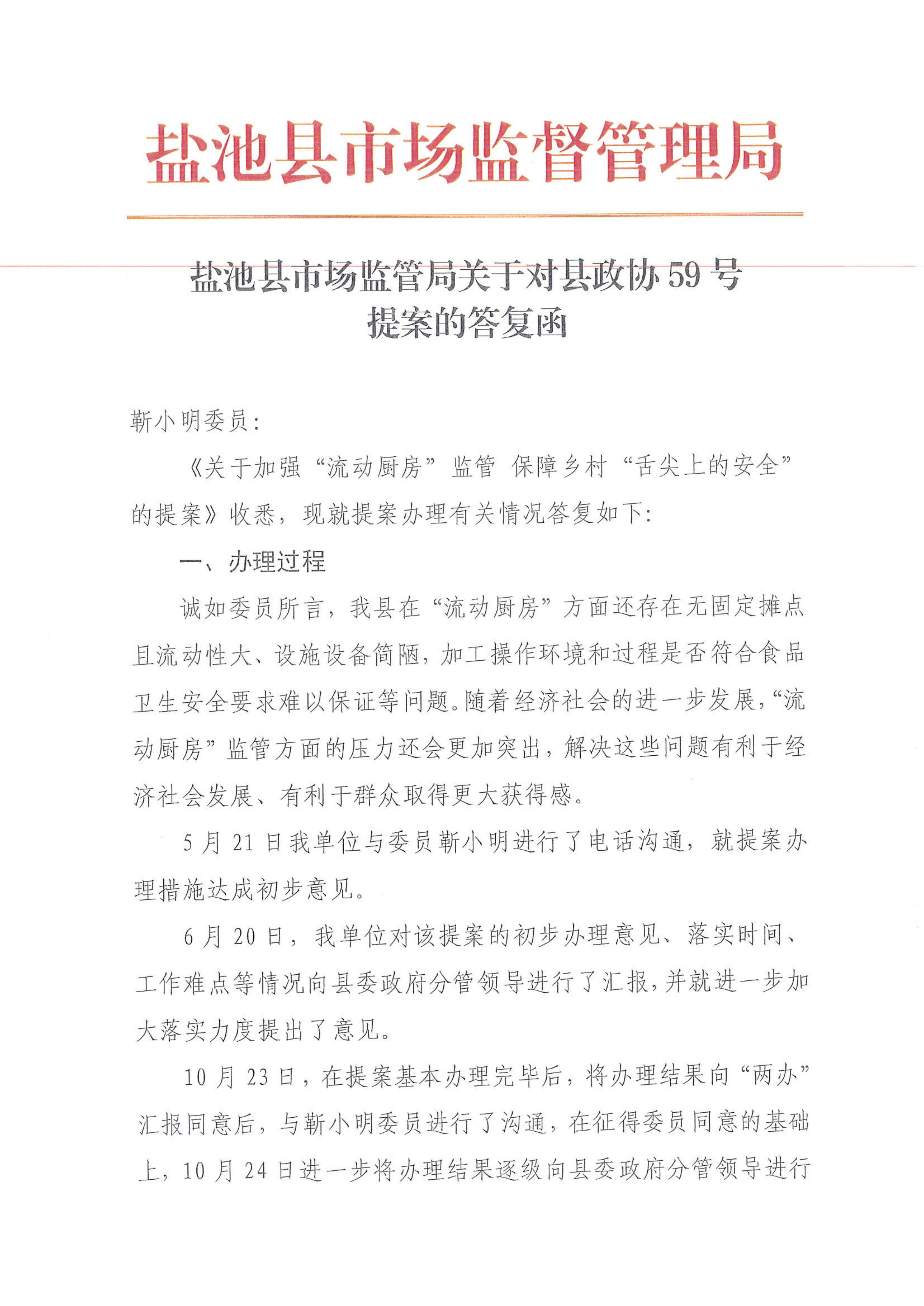 标 题: 盐池县市场监督管理局关于对县政协59号提案的答复函