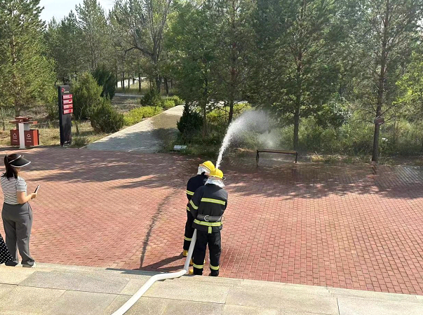 培训结束后,组织参会人员在革命烈士纪念园开展消防救援演练,通过模拟火情发生的方式,向参加培训的各场所负责人演示火灾扑救的规范流程。以此提高文化旅游广电行业领域各经营场所负责人的消防安全意识和应急处置能力。