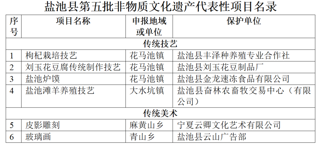 1.盐池县第五批非物质文化遗产代表性项目名录