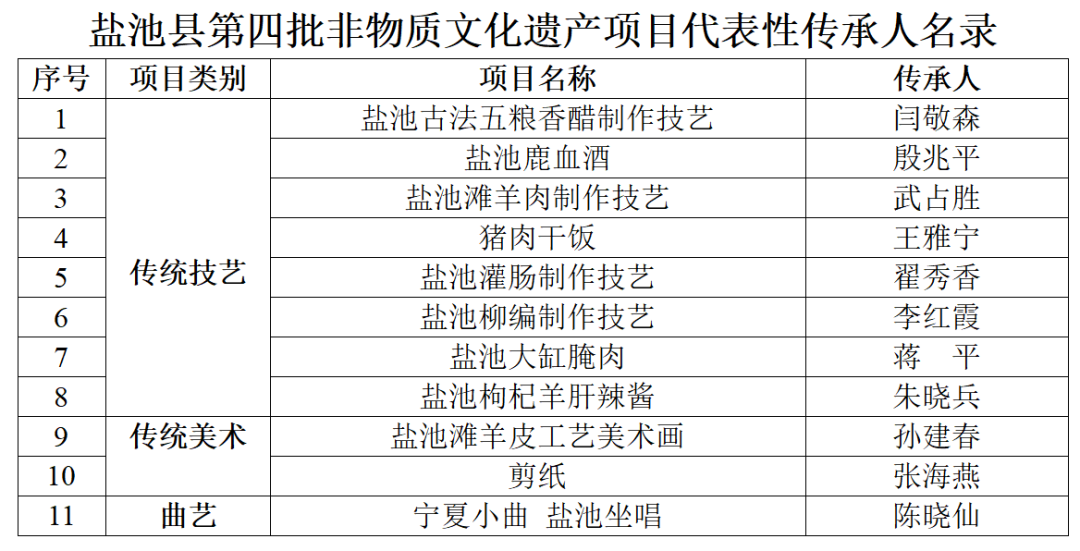 2.盐池县第四批非物质文化遗产项目代表性传承人名录