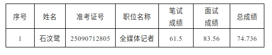 根据《盐池县政府购买公共服务人员实施方案》(盐党办发〔2017〕98号)文件要求,按照顺延递补原则,补录全媒体记者1名。现将拟补录人员公示如下: