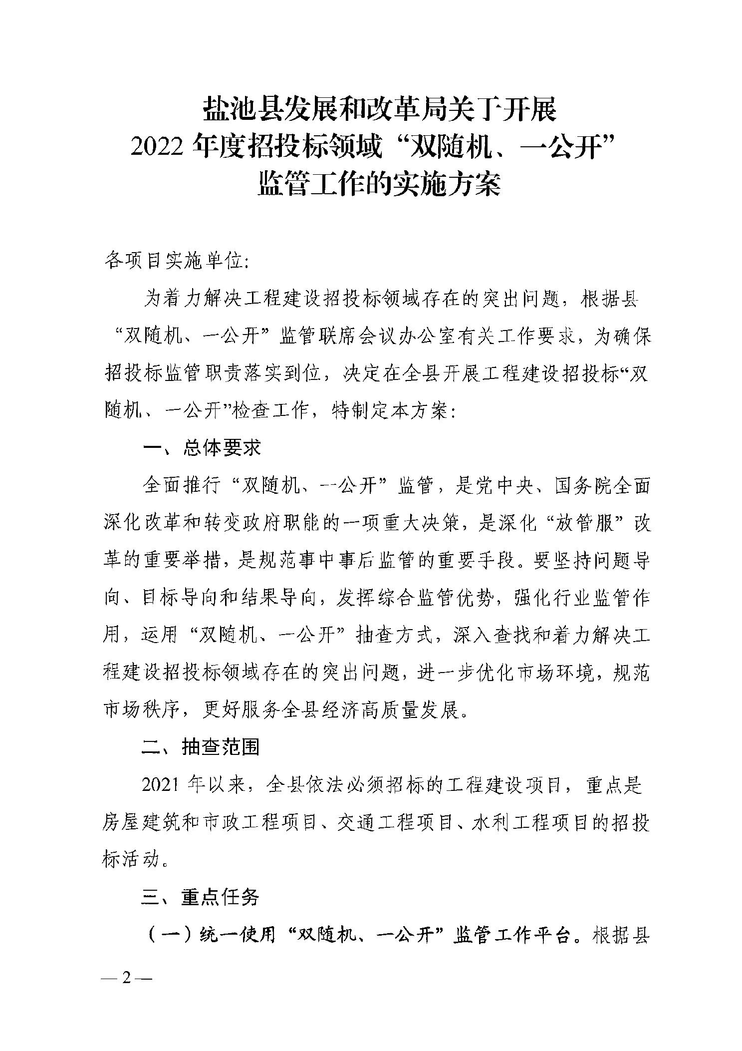 关于《盐池县发展和改革局关于开展2022年度招投标领域“双随机、一公开”监管工作的实施方案》.pdf