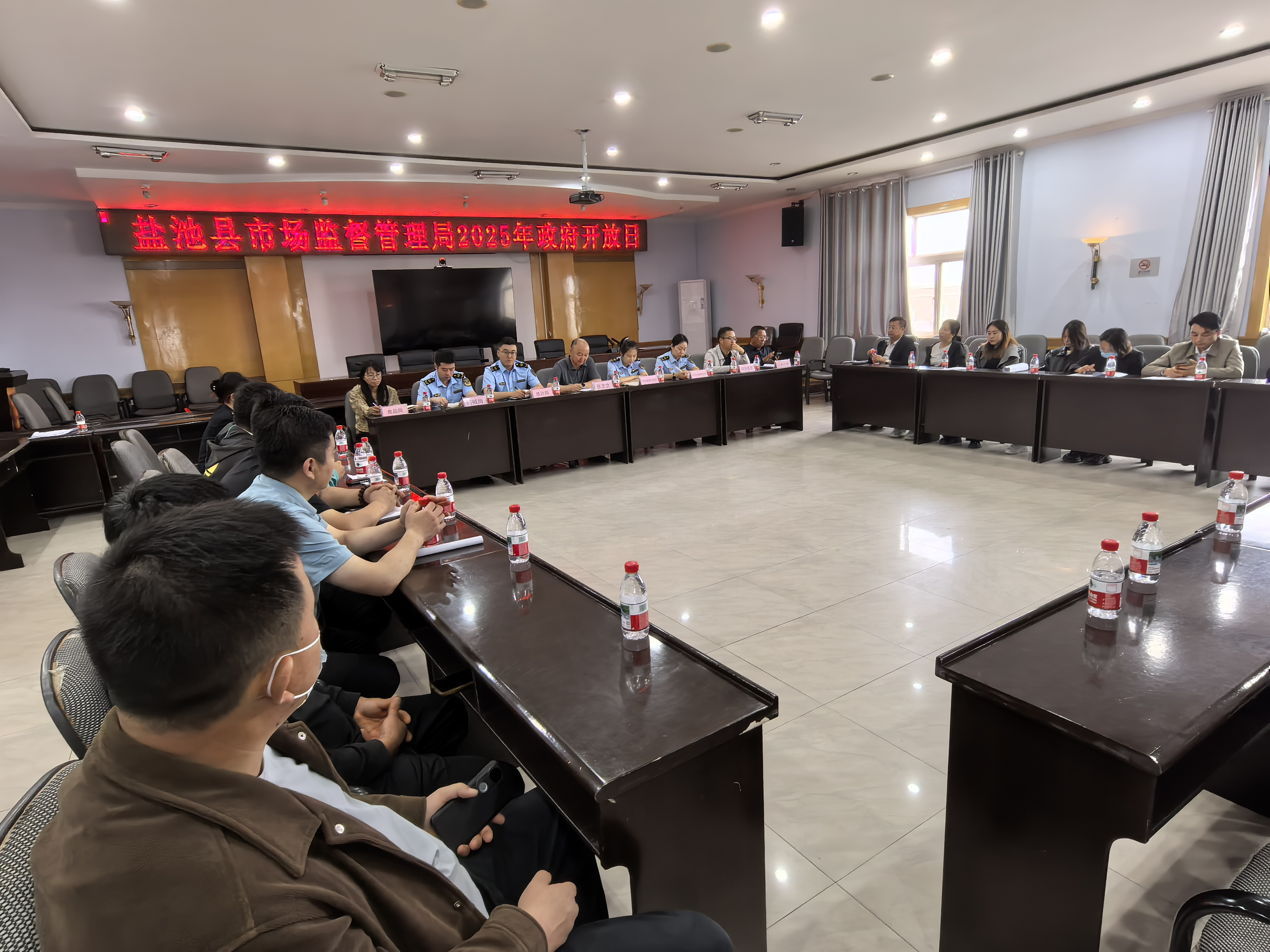 为进一步深化政务公开,构建政民互动桥梁,盐池县市场监督管理局于2025年9月5日举办“透明市监 携手共治”政府开放日活动。活动邀请人大代表、政协委员以及20名群众代表参与,通过实地观摩与座谈交流相结合的形式,全方位展示市场监管工作成效。