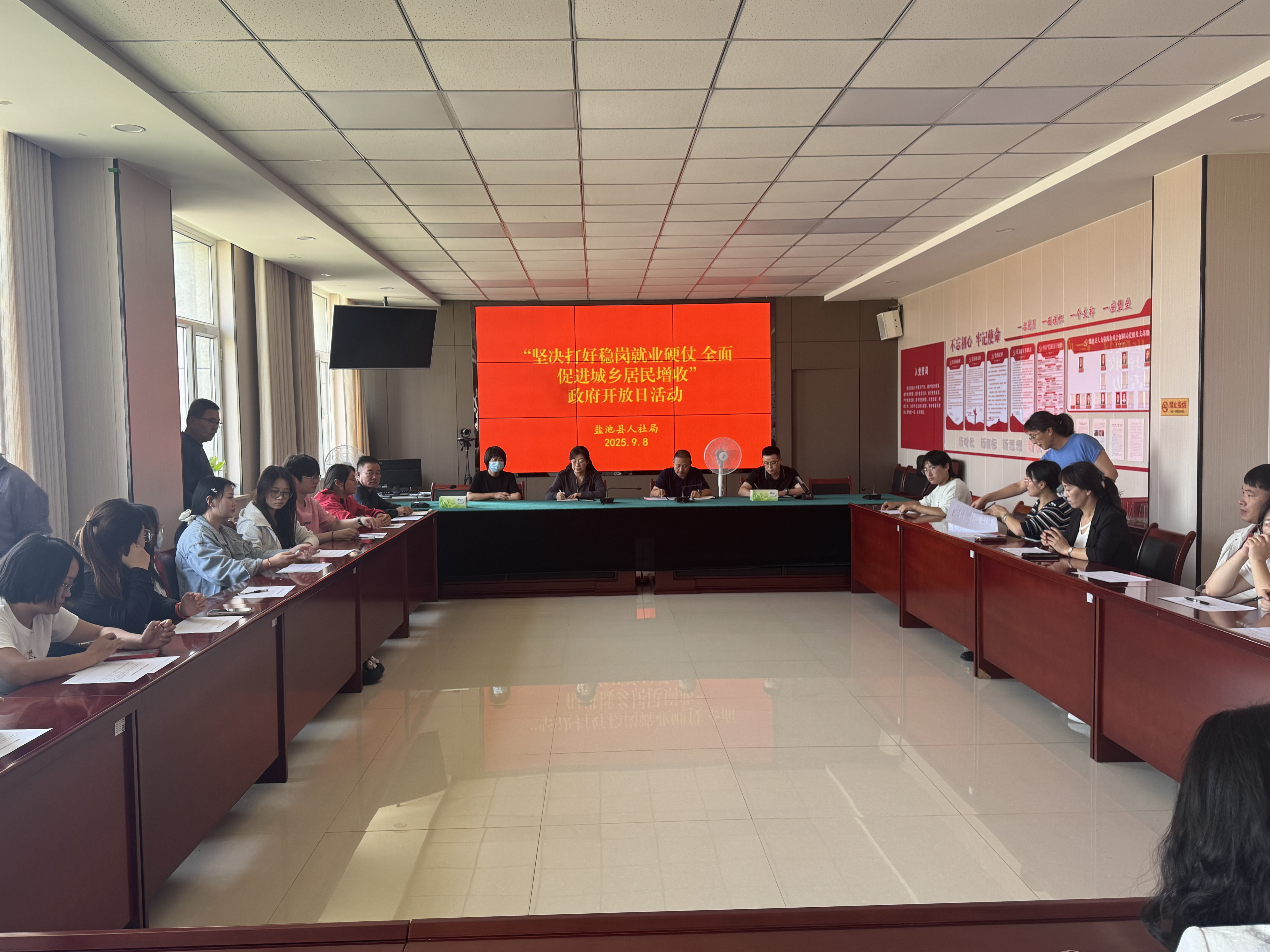 为深入学习贯彻党的二十大和二十届三中全会精神和习近平总书记考察宁夏时关于“要把就业摆在突出位置”的重要讲话精神,进一步深化政务公开工作,提升广大群众对人社工作的认知度和满意度,增强群众获得感、幸福感、安全感。9月8日上午,县人力资源和社会保障局开展以“坚决打好稳岗就业硬仗 全面促进城乡居民增收”为主题的政府开放日活动,邀请党代表、人大代表、政协委员、县政府各部门、各服务对象、群众代表等20余人参加了活动,通过现场观摩、政策讲解、座谈交流,拉近干群关系,以开放的姿态展示了人社工作的新风貌。